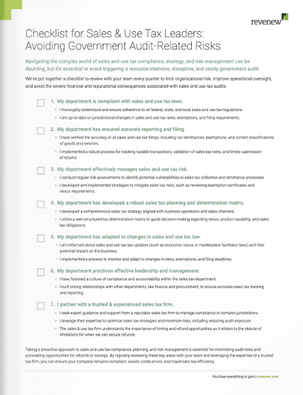 Checklist for Sales & Use Tax Leaders: Avoiding Government...